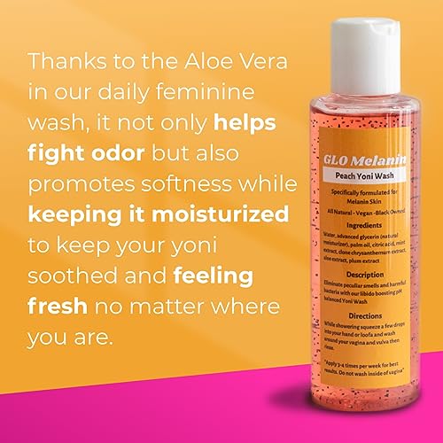 GLO Melanin Peach Yoni Wash with Aloe Vera, All Natural Feminine Wash for Women pH Balance, Hygiene Vagina Wash Soap for Women Sensitive Skin Safe