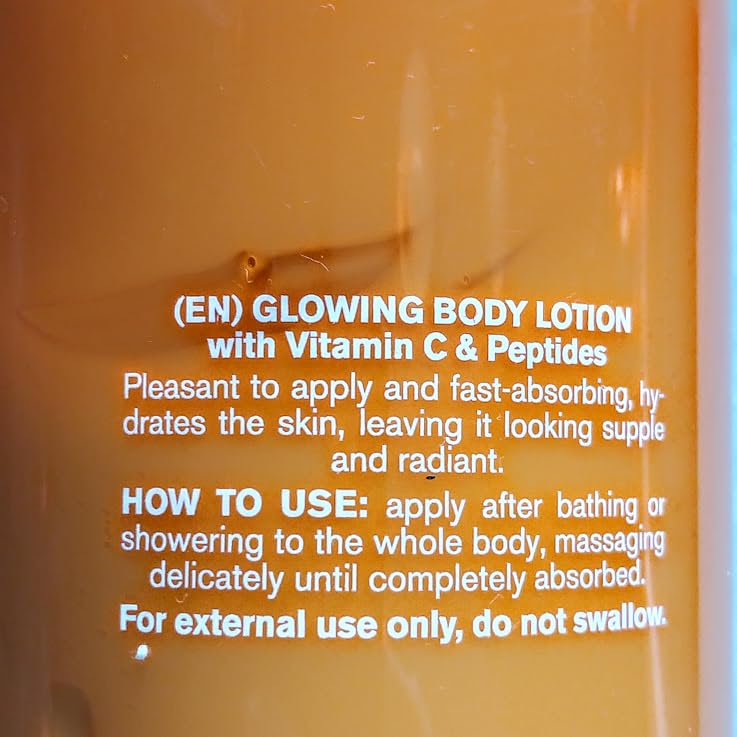 GLOWING BODY LOTION, VITAMIN C & PEPTIDES, Enhance your skin’s beauty, leaving a radiant glow, No Parabens/Mineral Oils, 33.8 fl oz (1000ml)