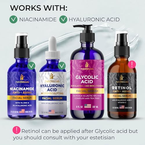 Glycolic Acid Serum for Face 15% Strength – Extra Large Size (8Oz) – Advanced Formula for Enhancing Skin Radiance, Texture Improvement, Addressing Uneven Tone & Fine Lines by InstaSkincare