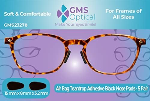 GMS Optical Adhesive Anti-Slip Teardrop Air Bag Cushion Silicone Nose Pad Reduce pressure and prevent slipping for Glasses, Eyeglasses, Sunglasses(15mm x 8mm x 3.2mm) (5 Pair) (Clear) (10 Pair, Black)