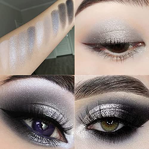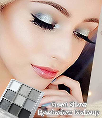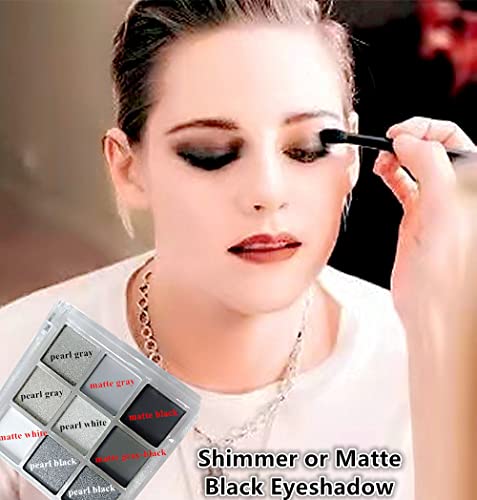 【Shimmer&Matte Color White/Black/Silver Eyeshadow Makeup】9 Hot Eye Black Colors:Black White Gray Silver Smokey Eyeshadow Palette,Cool Toned Matte & Shimmer.