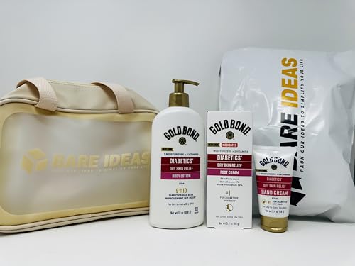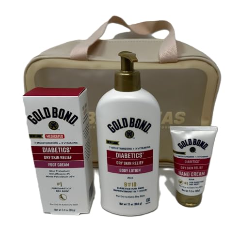 Gold Bond Diabetic Dry Skin Relief Foot Cream, Hand and Body Lotion & Cream Bundle with Carrying Bag – Diabetes Care