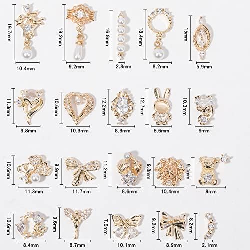 Gold Nail Art Charms Nail Art Metal Luxury White Zircon Rhinestones For Nails Shiny Nail Art Crystal Gems Jewelry Nail Diamond Rhinestone Charms For Girls Woman DIY Nail Art Decoration(20pieces C Set)