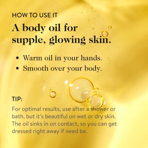 Natural Body Oil: Made with nutrient-dense lipids, this moisturizing body oil quenches dry, dull skin for a healthy-looking glow. Pomegranate, raspberry seed, sea buckthorn, kakadu plum, and grapeseed oil leave skin feeling firm, smooth, and hydrated.