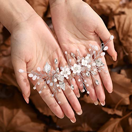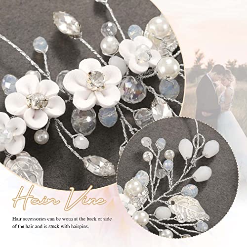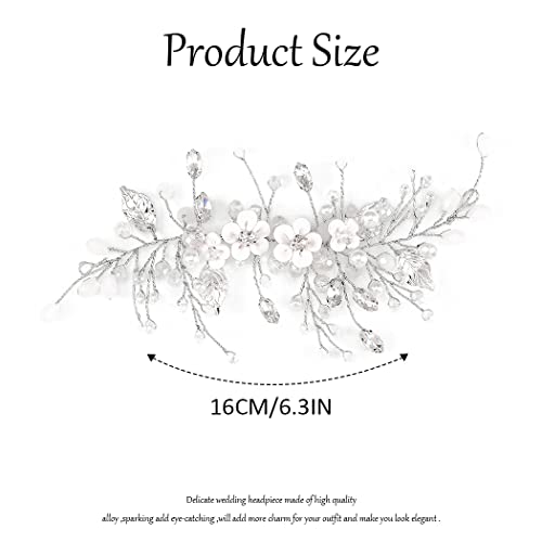Gorais Bride Wedding Hair Vine Silver Flower Bridal Hair Piece Rhinestone Crystal Headpiece Beaded Hair Accessories for Women and Girls