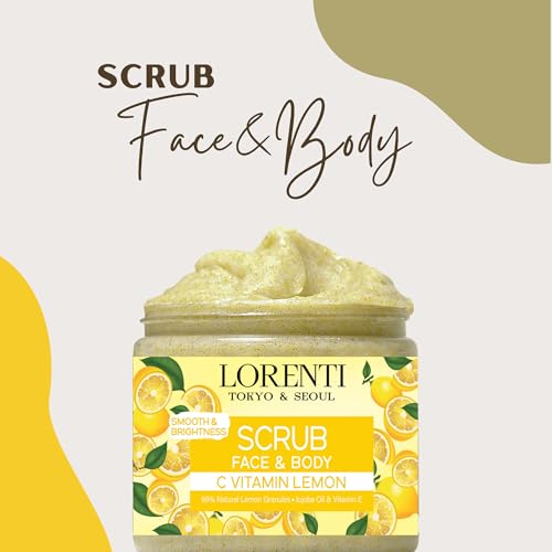 Granulated Natural Vitamin C Lemon Scrub for Face and Body | Antioxidant and Anti-aging Skin Peeling | Exfoliating with Jojoba Oil and Vitamin E
