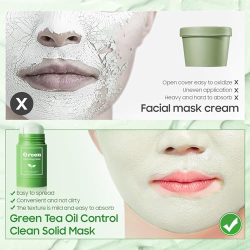 Green Tea Mask Stick Blackhead Remover, Face Masks Skincare for Face Moisturizing & Oil Control, Green Tea Purifying Clay Clean Face Mask for All Skin Types Men and Women
