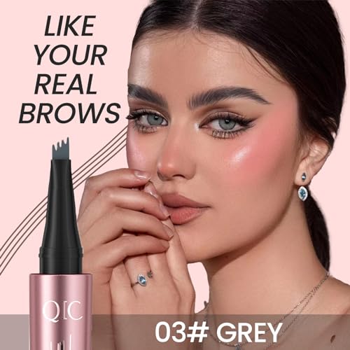 Grey Eyebrow Pencil – 4 Fork Tip 3D Eyebrow Pen Microblading Brow Pencil, Lift & Snatch Eyebrow Tint Eye Makeup, Long-Lasting Waterproof & Smudge-proof with Hair Like Strokes (Grey)