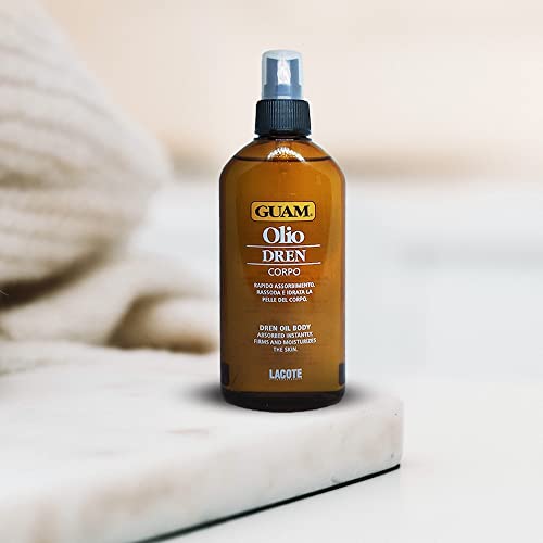 LYMPHATIC DRAINAGE MASSAGE OIL: This anti-cellulite oil has an emollient effect these ingredients help to restore the skin’s moisture level and support the lipid barrier to retain moisture. To eliminate waste products, lymphatic drainage massage with Guam Dren Body Oil also boosts microcirculation, yielding a velvety soft, supple, and well-sculpted body. This light and non-greasy oil absorbs instantly without leaving an oily residue on the skin or clothes.