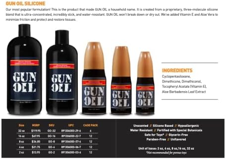 Gun Oil Silicone Based Lubricant 2 Ounce Personal Long-Lasting Sex Lube Condom & Latex-Safe Hypoallergenic Unscented No Residue Non Sticky Intimate Lubrication Works Underwater Couples, Men and Women