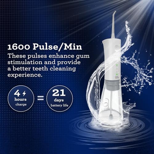 POWERFUL PLAQUE REMOVAL: With up to 1600 times/min of high-pressure water pulse, it helps remove plaque and food particles in between the teeth and under the gum line. It is IPX7 waterproof design ensures no damage to your flosser if it takes a quick dip in water!