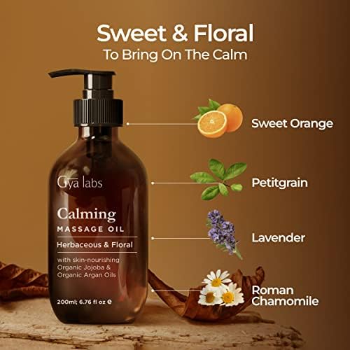 Gya Labs Calming Massage Oil for Massage Therapy – Natural Aromatherapy Massage Oils – Crafted with Lavender, Petitgrain, Chamomile, Sweet Orange, Jojoba & Argan Oils (6.76 fl oz)