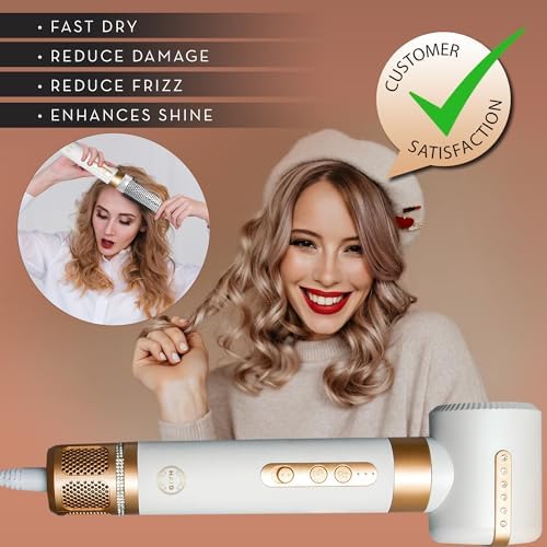 EFFORTLESS USE FOR EVERY HAIR TYPE- Our user-friendly 7-in-1 styling tool is designed with everyone in mind! With simple controls and a variety of attachments, achieving the salon blowout of your dreams has never been easier. The ionic technology reduces frizz and enhances shine, while the adjustable temperature settings ensure safe styling. Whether your hair is thick, thin, curly, straight, or coarse, this all-in-one hot brush/blow dryer/air curler has got you covered.