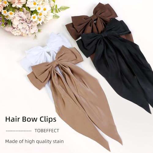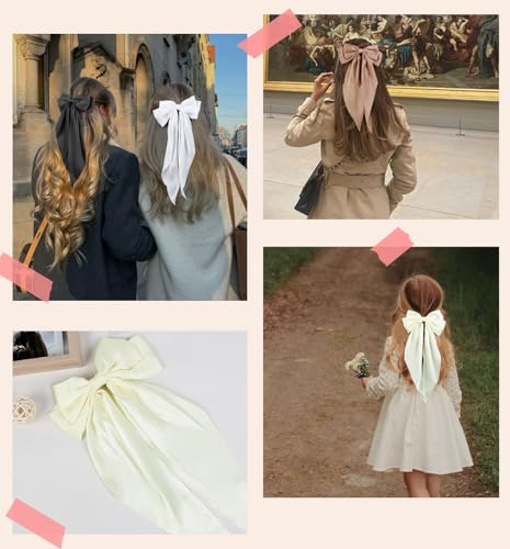 Big Satin Hair Bows for Women and Girls, Soft Bow Hair Clip with Long Ribbon