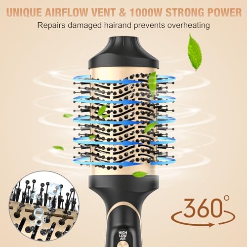 [POWERFUL PERFORMANCE] Hair dryer brush blow dryer with a 1000-watt motor, 1000W powerful motor provides the right heat to efficiently dry wet hair without causing any hair damage. This hot tool hair dryer brush blow dryer brush delivers salon-quality blowout results in less time. The brush hair dryers high-speed airflow dries your hair quickly and even heat distribution, the ceramic tourmaline coating protects your hair from excessive heat exposure and reduces frizz, also.