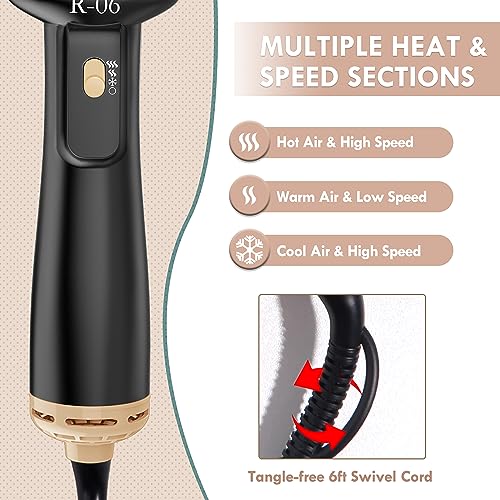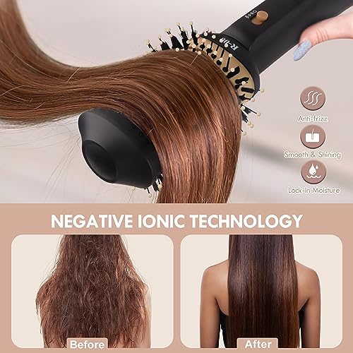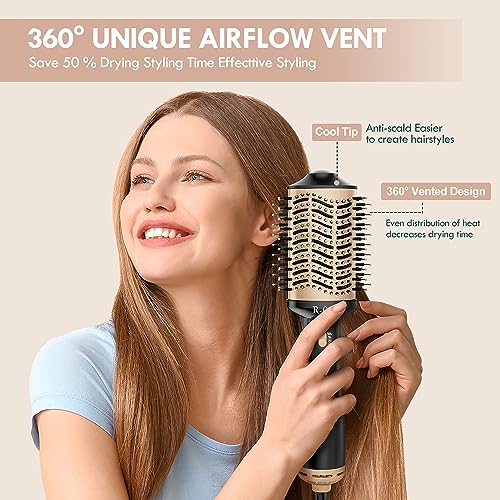 4 in 1 Hair Dryer Brush: Comb, hair dryer and styler volumizer curly Iron in one, comb and style while blow-drying. 360° surrounded wind and 50% bigger drying area let you save at least half of drying and styling time