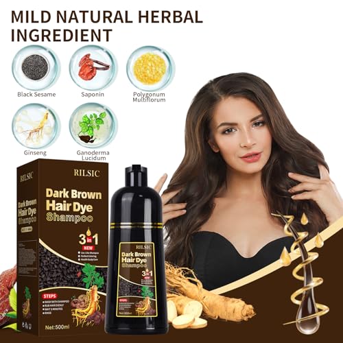 Hair Dye Shampoo 3 IN 1, Instant Hair Color Shampoo for Women Men – Herbal Natural Hair Color- Grey Hair Coverage, Black Hair Dye Coloring in Minutes(500ML, 17.6 Fl Oz) (Dark Brown)