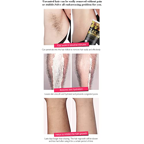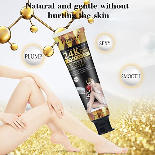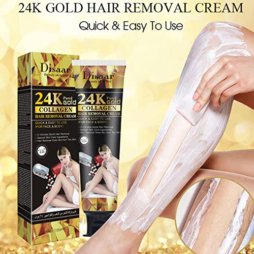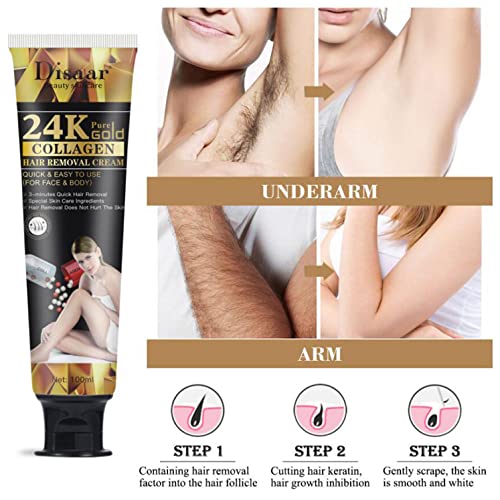 Hair Removal Cream 24k Gold Essence Collagen Argan Oil 3 Minutes Quick & Easy To Use Face Body Legs Depilating Moisturizing 100ml/3.38fl.oz (24k Pure Gold Collagen)