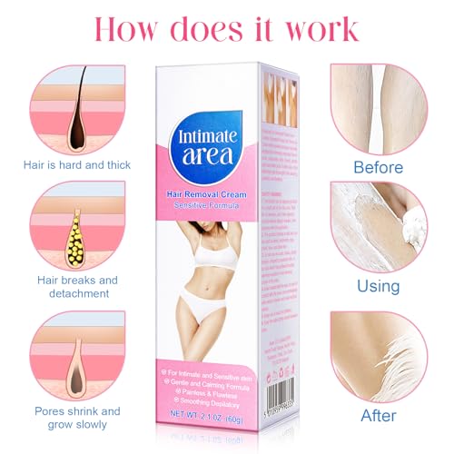 ✔【Designed for Intimate/Intimate Areas】Specially designed to remove unwanted hair on arms, underarms, legs, chest, private parts and other pubic and bikini areas, more effective and thorough than shaving, painless and flawless.