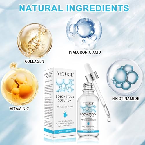 【Effective Ingredients, Instant Skin Tightening】Botox Stock Solution Facial Serum is enriched with botanical hyaluronic acid, niacinamide and vitamin C, which help stimulate the production of elastin and protofibrillar proteins, moisturizing, non-sticky and easily absorbed, helping to plump and tighten the skin.