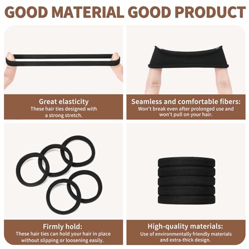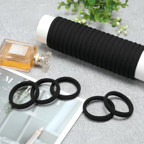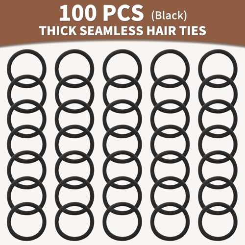Hair Ties Black 100Count Extra Thick 5CM, Bulk Elastic Hair Bands for Thick Heavy Hair, Seamless Hair Accessories for Women, Girls, Ponytail Holder (Black)