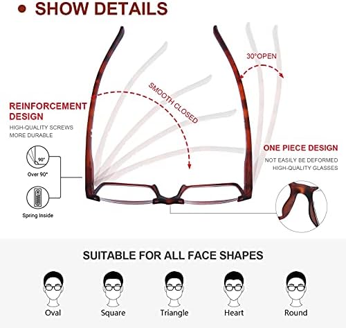 【VALUE PACK BROADER VISION】Half Moon Shape Reading Glasses allow you to look at distant objects without blocking the view; meanwhile, anti eye strain, causing your vision to deteriorate.Great price! Great for home, office, or outdoor use. Keep a pair at your desk, in your bag, and in your favorite reading spots. Never lose your glasses again!