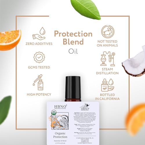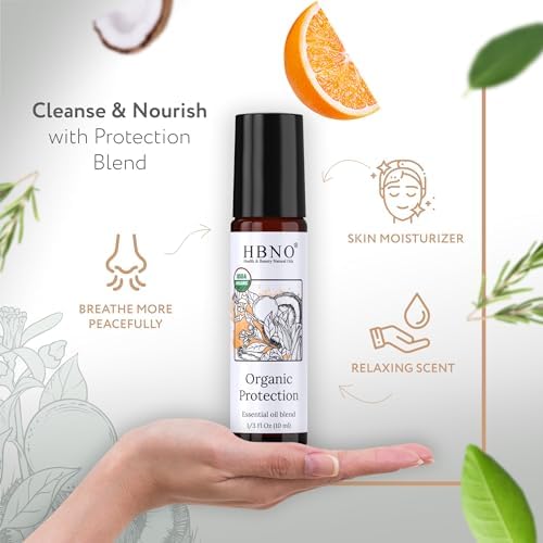 HBNO Organic Protection Blend & MCT Roll-on – 1/3 oz (10 ml) Travel Size – USDA Certified Organic – Perfect for Traveling, Aromatherapy, Massage, perfumes, moisturizer