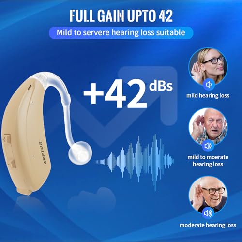 Full Gain Up to 42dBs: It is suitable for mild to severe hearing loss, enabling users to hear TV, conversations, and natural sounds with clarity.