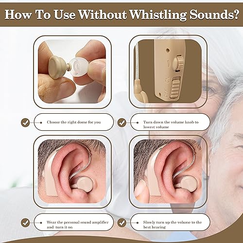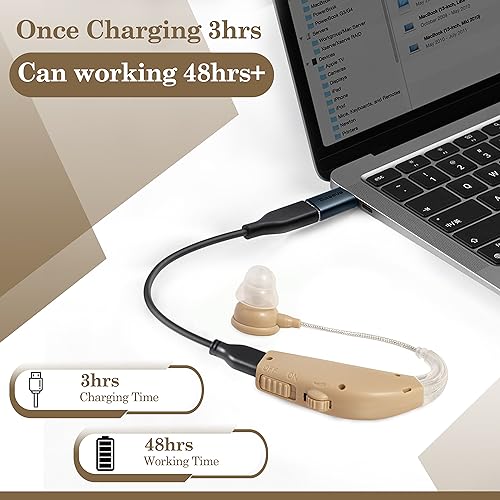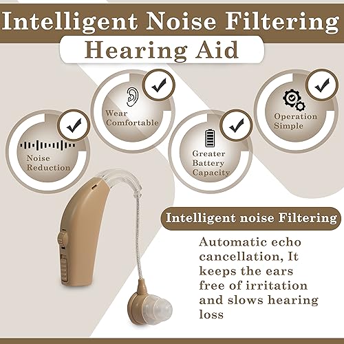 Hearing Aid for Seniors, Rechargeable Hearing Amplifier with Noise Cancelling, Volume Control, Digital Hearing Assist Device with Charging Box (Beige)