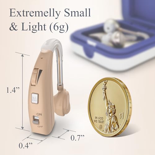 【COMFORTABLE TO WEAR】Made from lightweight materials, the rechargeable hearing amplifiers are extremely lightweight and easy to wear and carry. Ergonomic shape design fits the curve of the ear without causing pressure or discomfort on the auricle ensures comfort and stability when wearing. allowing wear it for a long time without discomfort.