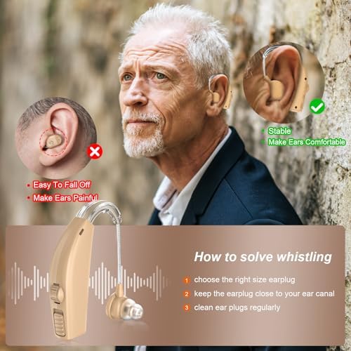 Hearing aids suitable for the elderly: ① If a whistling sound occurs: First, please do not cover the sound hole. If worn improperly, a whistling sound will occur. ②Our products are not professional hearing aids and are not suitable for people who need professional hearing aids. If you encounter a problem that cannot be solved, please contact us in time, thank you very much