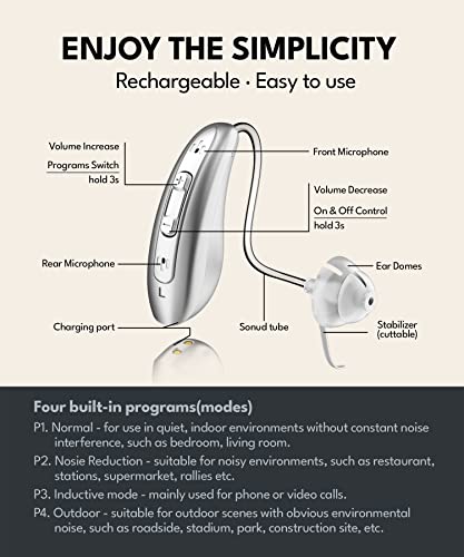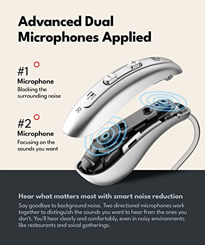 Hearing Aids for Seniors, Charger Case On-the-Go, USA-Made Digital Core, Volume and Modes Adjustable, Rechargeable and Active Noise Cancelling with Dual Microphones, OTC Hearing Amplifier