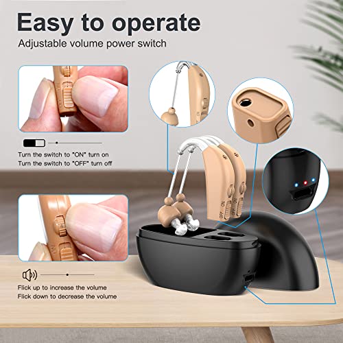 Hearing Aids for Seniors, Rechargeable Hearing Amplifier with Noise Cancelling, Volume Control, Digital Hearing Assist Devices with Charging Box