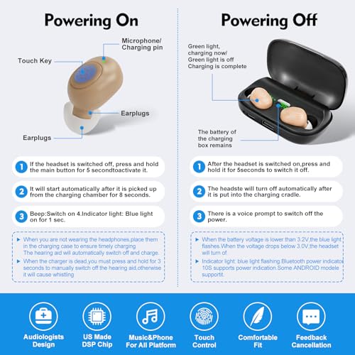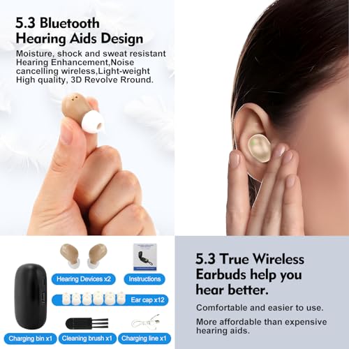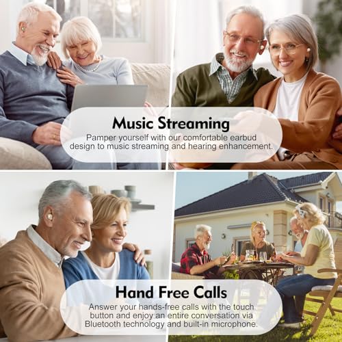 Bluetooth 5.3: Hearing aids for seniors use Bluetooth 5.3 technology to provide you with hearing aids while easily pairing your hearing aids with your smartphone or other Bluetooth-enabled devices, streaming your favorite music, TV shows, and making hands-free calls in a clearer, more natural way. No APP required for hearing aids, just Bluetooth.