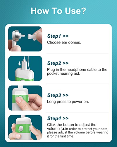 EASY TO USE: no complicated adjustments, no need for regular battery changes. You can get hearing only by setting a volume on hearing amplifier for seniors. (Tips: In order to avoid ear damage caused by excessive volume, please adjust the volume to an appropriate volume before wearing it for the first time).