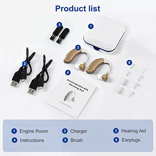【Compact & Portable】The hearing aids are compact and portable, making them easy to carry and use on the go. They come with a carrying case and a cleaning tool, ensuring that they stay clean and in good condition.