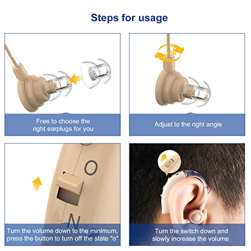【Ergonomic Design】The hearing aids are designed with ergonomic comfort in mind, featuring lightweight and comfortable earpieces. The adjustable volume control and tone control allow you to customize the sound to your liking, ensuring a perfect fit for different hearing situations.