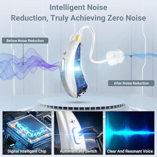 【Noise Reduction Hearing Aids】The hearing aids have digital chip with multi-directional noise reduction. The smart chip divides sound into different channel frequencies, greatly improving processing, noise reduction, feedback suppression and background noise removal, helping to ensure that the hearing aids provide high quality sound and speech intelligibility. This allows you to focus on your conversation without any distractions.