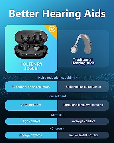 Hearing Aids With Low Noise – HOLFENRY hearing aids for senior have 16 channels of sound processing. This can help you cut out noise and regain lost sound. Wear hearing aids and you can resume enjoying watching TV, talking to others, listening to music, and more.