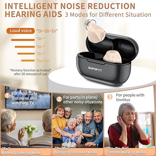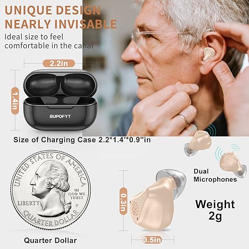 Hearing Aids Rechargeable, BUPOFYT Hearing Aids for Seniors -16 Channel Digital Noise Cancelling, Invisible Personal Sound Hearing Amplifier – 1 Week Backup Power – No Feedback (lvory)
