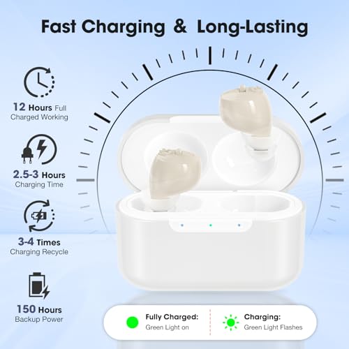 【Long-Lasting Usage】Our hearing aids come with rechargeable batteries. Charge for 3 hours and you can use your hearing aids for up to 12 hours of continuous use. Say goodbye to the hassle of changing batteries and enjoy clear hearing all day long.