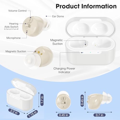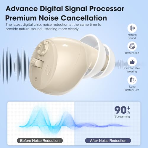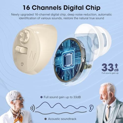 Hearing Aids, Rechargeable Digital Nano Hearing Aids for Seniors Adults with Intelligent Noise Cancelling, Portable Charging Case, Comfort Design and Nearly Invisible