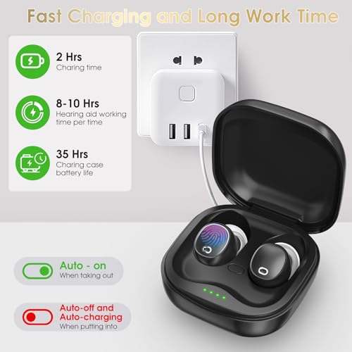 Fast Charging and Long Working Time: Fully charged in 2 hours, the hearing aid can last for 30-35 hours. The charging case provides approximately 3 additional charges for two hearing aids.