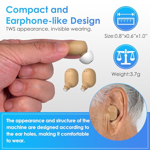 Hearing Aids,Rechargeable Hearing Aids for Adults and Seniors,Nearly Invisible,Intelligent Noise Reduction and Bluetooth—for Mild to Moderate Hearing Loss (Black)… (Skin)