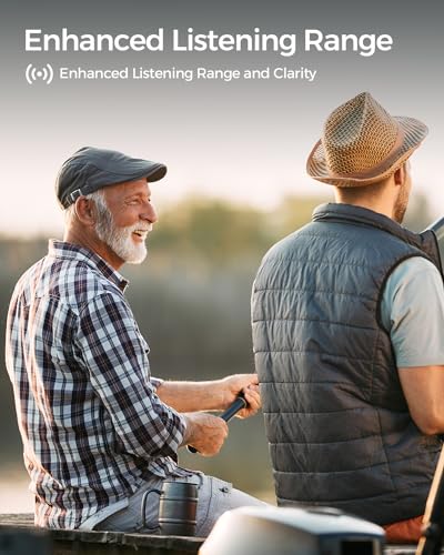 Enhanced Listening Range and Clarity: Open the remote microphone, toggle the mode between Local Mic and Remote Mic with the button at the bottom of amplifier and it will pair and connect automatically and capture sound up to 98 feet (30 meters) away. Whether you find yourself in a church or a bustling restaurant, you can easily hear clear sounds and engage in free conversations with friends and family.