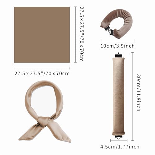 heatless hair curler for long hair overnight curls headband to sleep in, no heat curling rods for all hair types styling tools with coverchief, suede hair rollers with hook (Khaki 3pcs)
