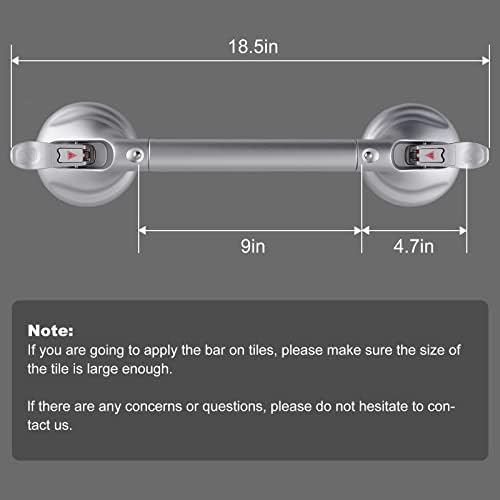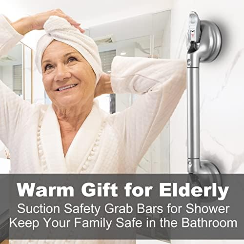 Heavy Duty Suction Shower Grab Bar – Toilet Bathroom Bathtub Safety – Shower Handles, Suction Cup Power Up to 250 LB, Perfect for Elderly Seniors(18.5 Inch, Gray Silver)