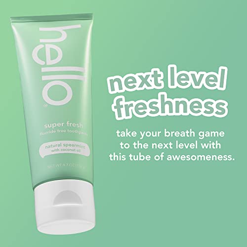 Hello Super Fresh Whitening Toothpaste, Fluoride Free Toothpaste with Natural Spearmint and Coconut Oil, Vegan, No Peroxide, No Fluoride, No Dyes, Gluten Free, BPA Free, 3 Pack, 4.7 OZ Tubes