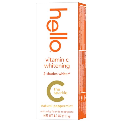 Say hello to a brighter smile and c ya later stains with Hello Vitamin C Whitening Toothpaste with Fluoride. This whitening toothpaste for adults has a delightful Peppermint toothpaste flavor and whitens teeth up to 2 shades whiter.* This fluoride toothpaste is infused with naturally derived Vitamin C, an alternative to peroxide for whitening teeth, and is safe for everyday use.