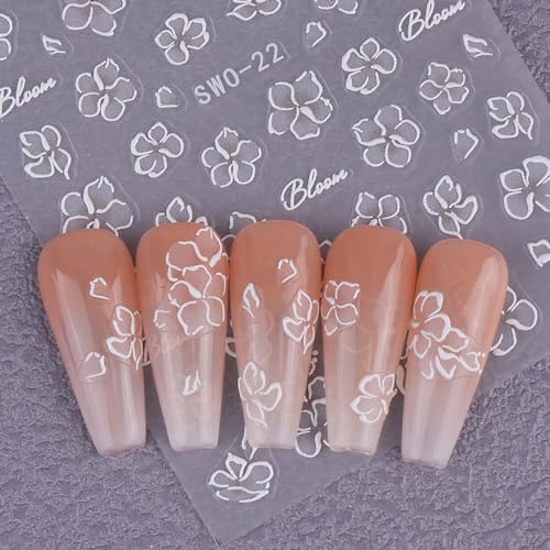 Hibiscus Flower Nail Art Stickers Summer White Hawaiian Flowers Nail Decals 3D Self-Adhesive Flower Nail Art Supplies Summer Cute Floral Nail Designs Manicure Sliders for Women Nail Art Decorations